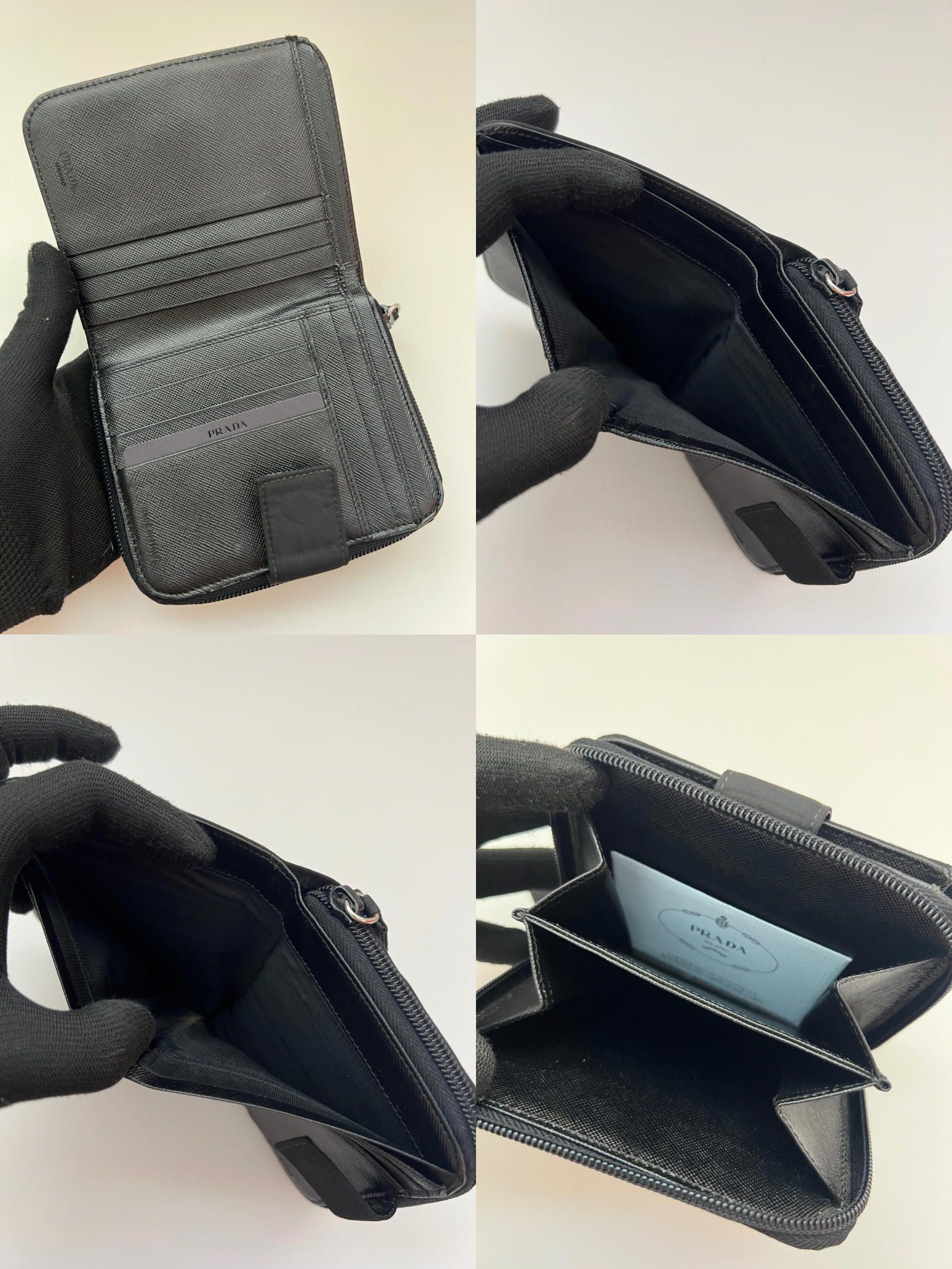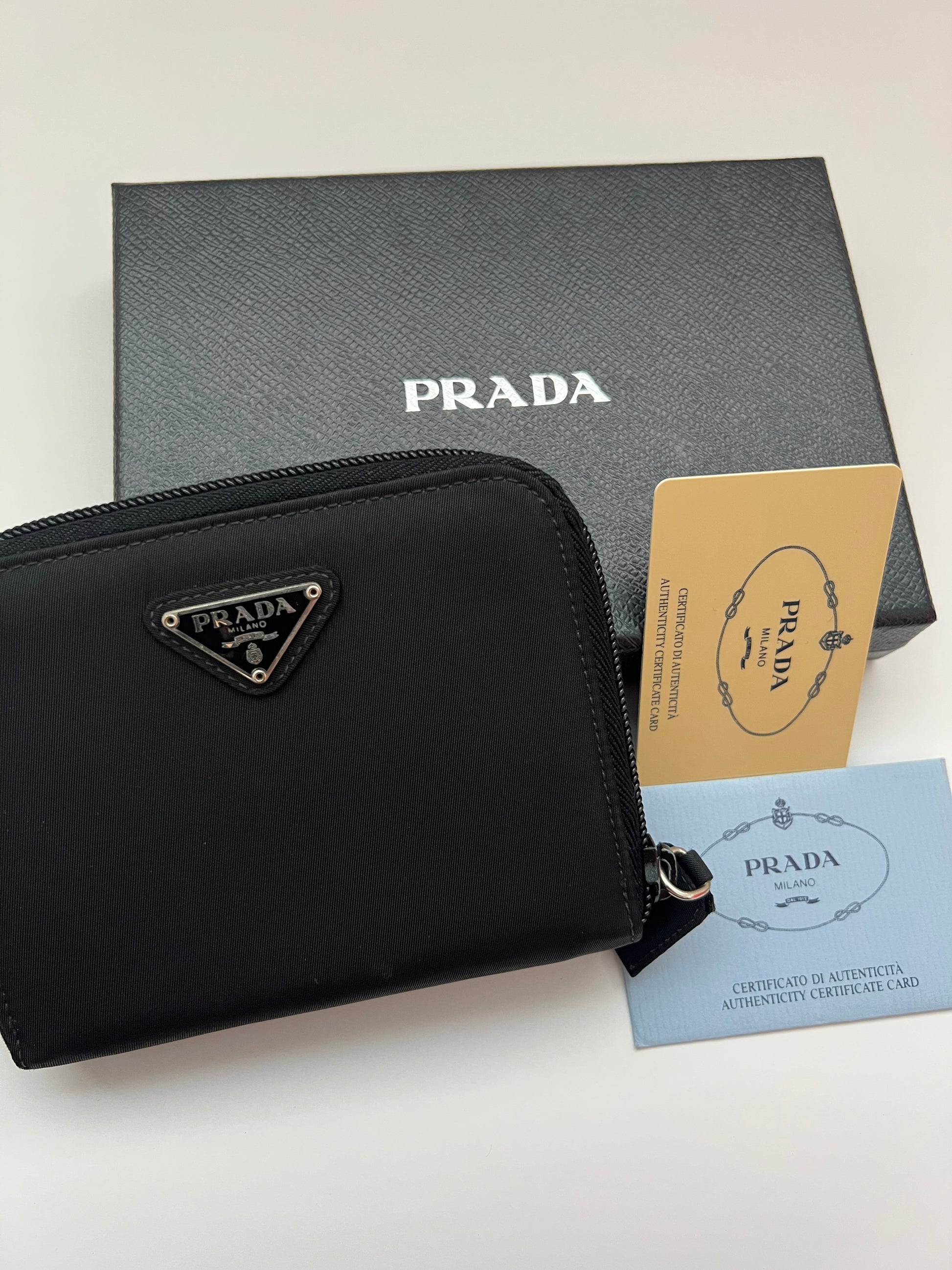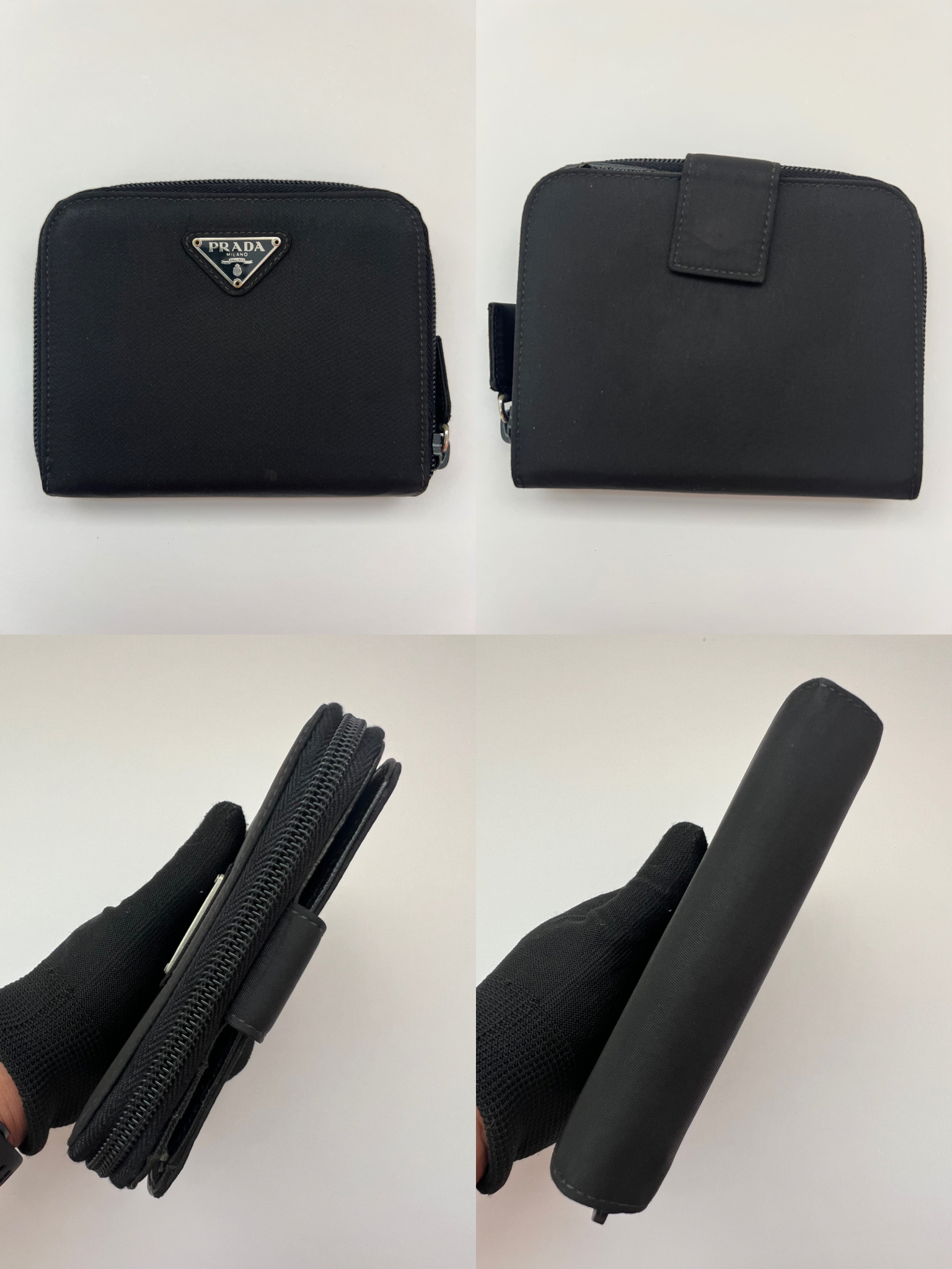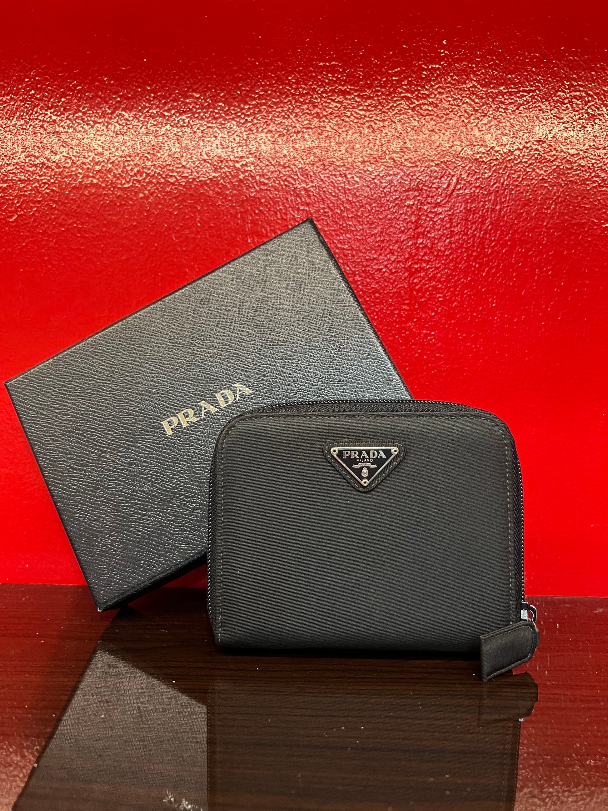 PRADA Tessuto Nylon Compact Zip Around Wallet Nero